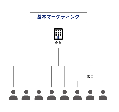 企業アカウントから直接ユーザーへアプローチ、又は広告を介してユーザーへアプローチ。